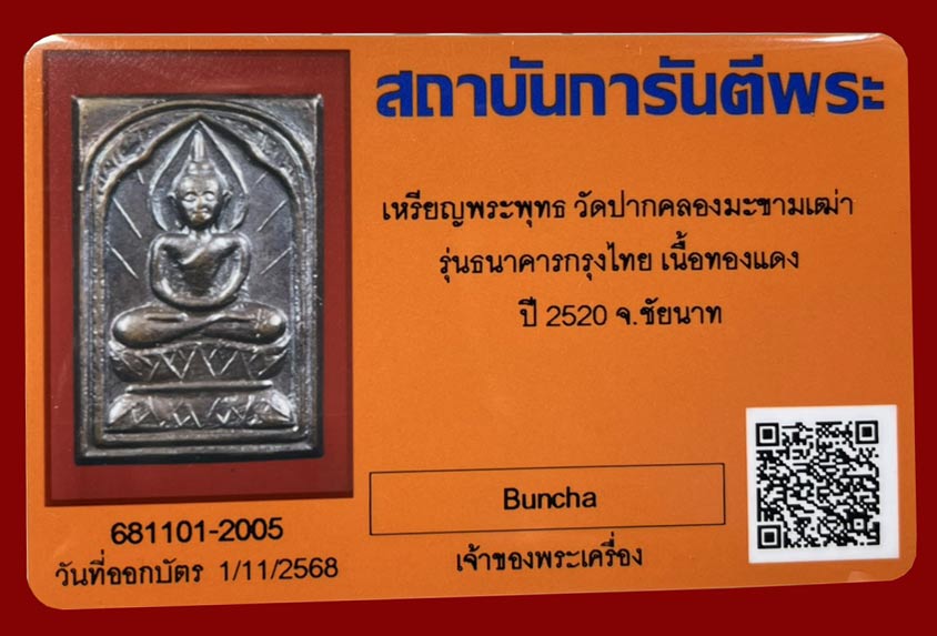 - ส่วนเนื้อตะกั่วจำนวน 1,000 เหรียญ ลุงชิต ลุงช้อยและอาจารย์เณรได้ร่วมกันสร้างถวายวัดปากคลองมะขามเฒ่า.