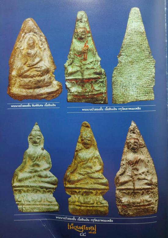 นางบัวสองชั้น(ตัดชิด) กรุวัดมหาธาตุ เนื้อชินเงิน จ.สุโขทัย พระหายาก ไม่ค่อยพบเจอ องค์นี้สภาพสวย มีหน้าตา ตัดชิดเดิมๆจากกรุ พระเนื้อจัดๆสนิมไขพระกรุเก่า พระพิมพ์นี้จะมีขึ้นที่กรุวัดเขาพนมเพลิง(ในรูป) แต่ผิวจะเป็นปรอท ผิดกับกรุวัดมหาธาตุที่ผิวจะเป็นสีดำตามแบบพระกรุเก่าที่แตกกรุมาก่อนครับ