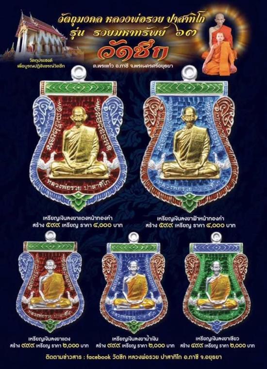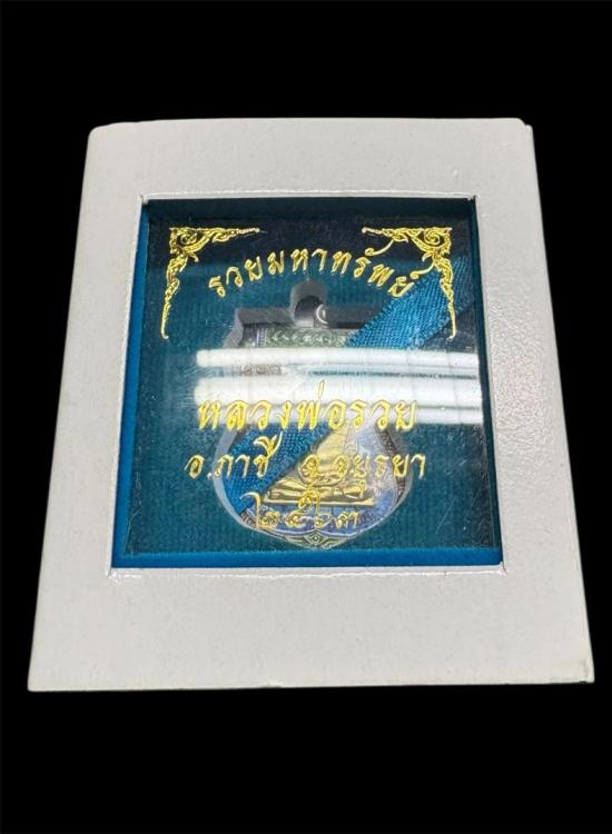 หลวงพ่อรวย วัดตะโก จ.อยุธยา เหรียญ รวยมหาทรัพย์ปี 63 เนื้อเงินลงยาฟ้าหน้าทองคำ เลข325 กล่องครบ
