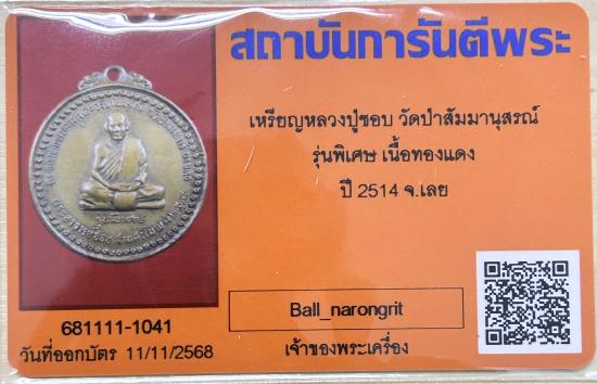 เหรียญหลวงปู่ชอบ วัดป่าสัมมานุสรณ์ รุ่นพิเศษ เนื้อทองแดง ปี 2514 จ.เลย |