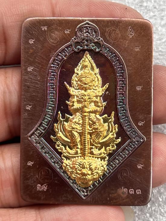 เหรียญท้าวเวสสุวรรณ รุ่นโชคดีเนื้อนวะหลังเรียบหน้ากากทองทิพย์ตอก9รอบไม่ตัดปีกกรรมการจารย์หลวงปู่จารเต็มสูตรหน้า-หลังสวยงามมีคุณค่าหมายเลข233 |