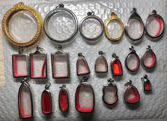 กรอบพระสแตนเลสใส่พระเครื่อง มือสอง คละพิมพ์ทรง 21 ใบ |