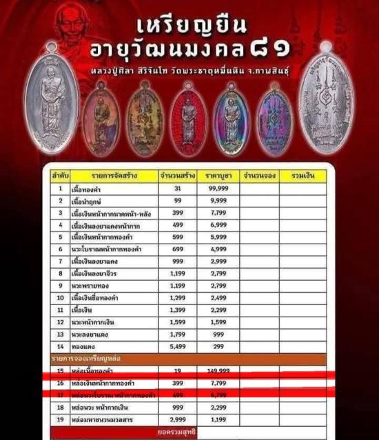 วัดใจ เคาะแรก หลวงปู่มหาศิลา สิริจันโท(หลวงปู่ศิลา) อายุวัฒนะมงคล81 พิมพ์ยืน "เหรียญเนื้อเงินหน้ากากทองคำ" เลขสวยๆ ราคาจอง 7,799