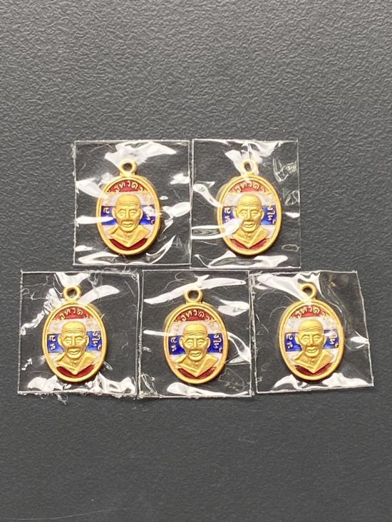 เม็ดแตงหลวงปู่ทวด หลังอาจารย์ทิม รุ่น100ปี เนื้อชุบทองลงยาสีธงชาติ 5องค์ |