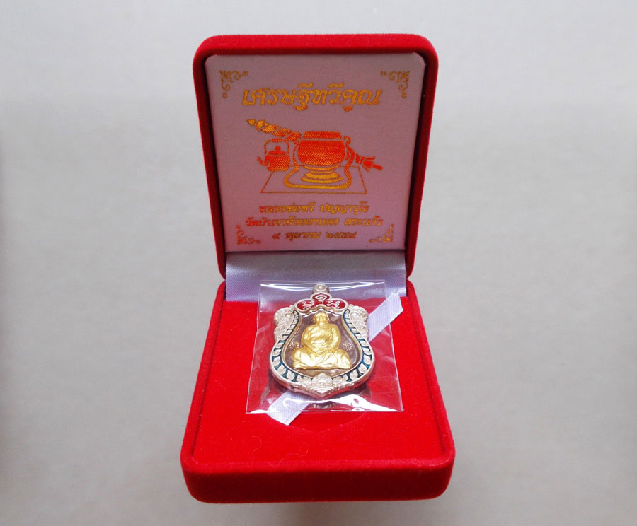 เหรียญรุ่นแรก หลวงพ่อทวี ปญญาวุโธ วัดป่าเขาย้อยผาแดง จ.สระแก ้ว พ.ศ.2559 เนื้อนวะโลหะ หน้ากกากทองคำซุ้มเงินลงยา ตอก 2 โค๊ต ตอกเลข พร้อมกล่องกำมะหยี่เดิม !!