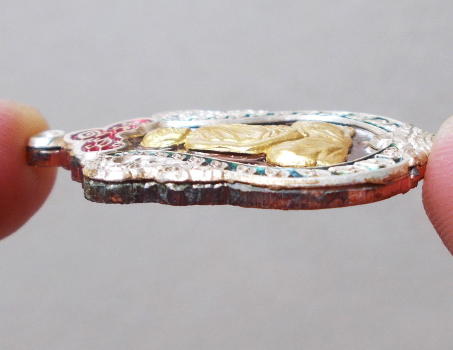 เนื้อนวะโลหะ หน้ากกากทองคำ ซุ้มเงินลงยา ขนาด 2.8 ซ.ม. X 4.5 ซ.ม.