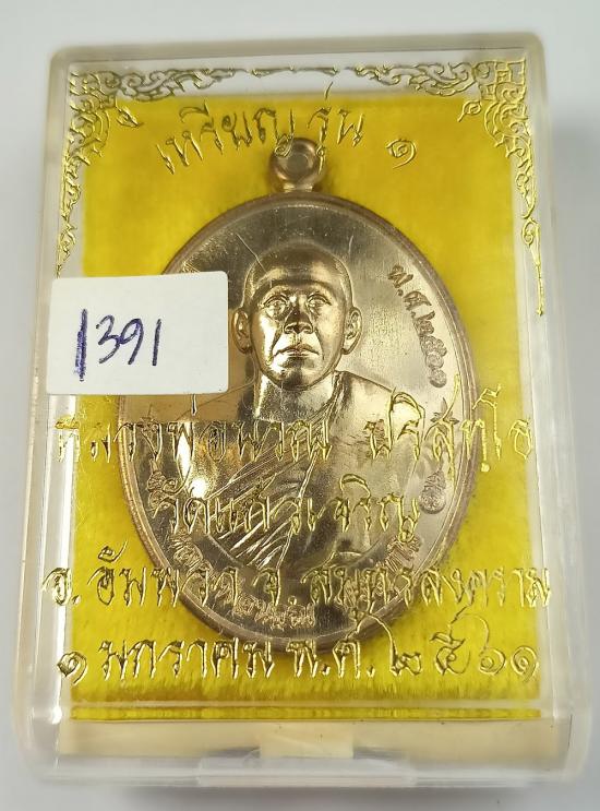 เหรียญรุ่นแรก (รุ่น1) หลวงพ่อคำนวณ วัดแก้วเจริญ เนื้อนวะโลหะ เบอร์ 1391 พร้อมกล่องเดิมครับ