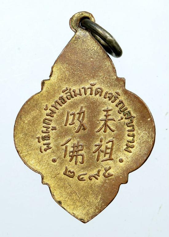 เหรียญหลวงพ่อโตหลังหนังสือจีน ปี2495 วัดเจริญสุขารามวรวิหาร จ.สมุทรสงคราม สภาพใช้พอสวยครับ กะไหล่ทองยังมีครับ |