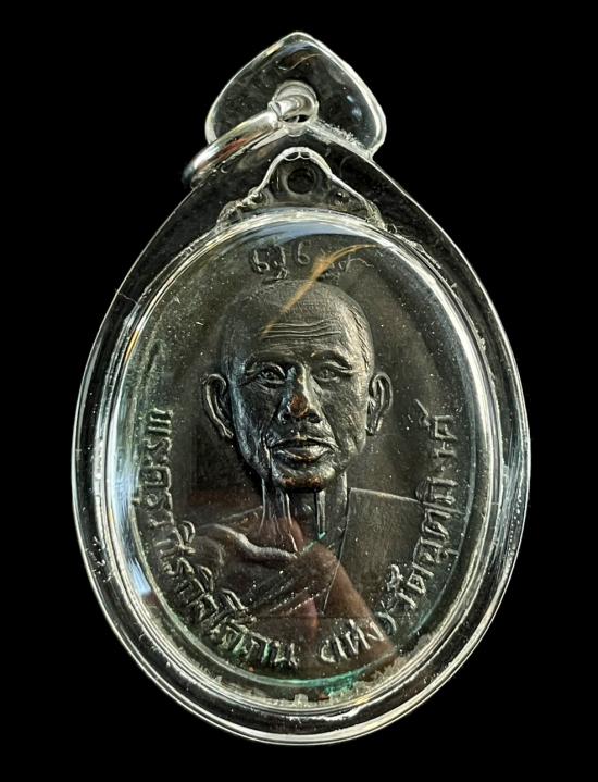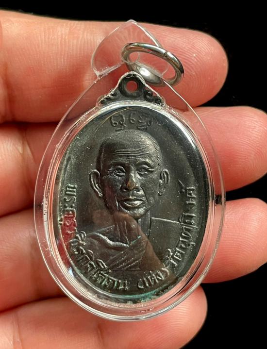 เหรียญพระครูวชิรกิจโสภณ (เท่ง) วัดอุตมิงค์ บ้านแหลม เพชรบุรี ปี 2518 เนื้อทองแดงรมดำ เลี่ยมพลาสติก