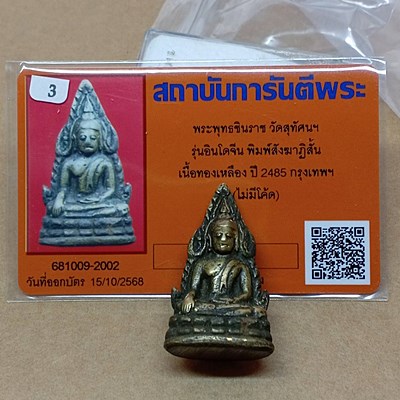 พระพุทธชินราช อินโดจีน ปี 2485 สังฆาฎิสั้น พร้อมบัตร