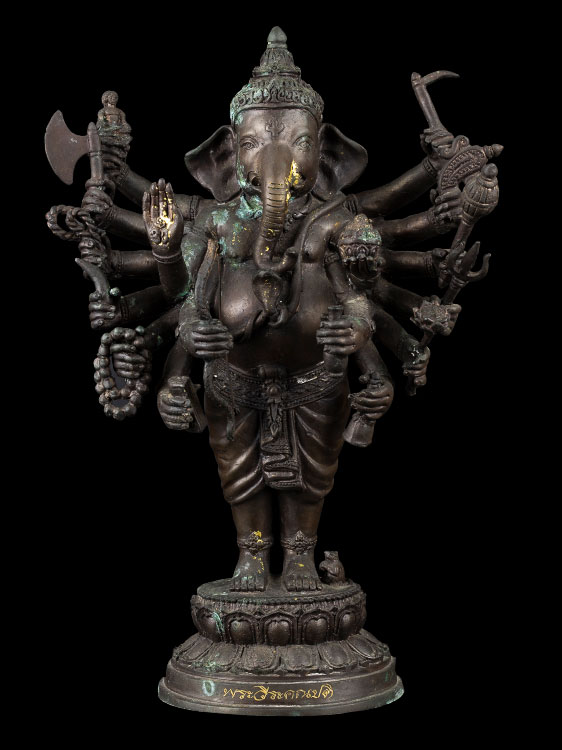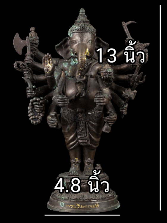 **พระวีระคณปติ (พระพิฆเนศวร์ปาง 16 กร) 15 นิ้วเนื้อโลหะรมมันปู [หมายเลข 166]