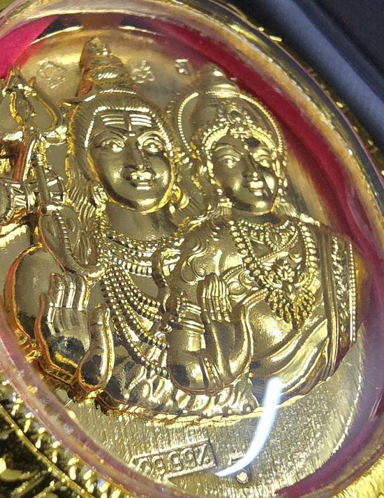 เนื้อนวะโลหะ ชุบทองคำ 99.99% ลงยาพื้น 7 สี เพ้นองค์พระพิฆเนศ หลังเรียบ ติดตัดชิดพระศิวะชุบทองคำ