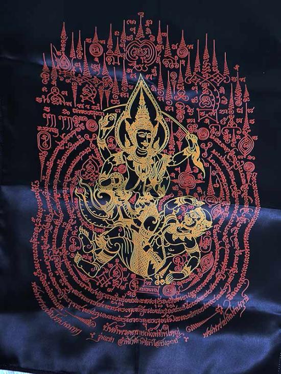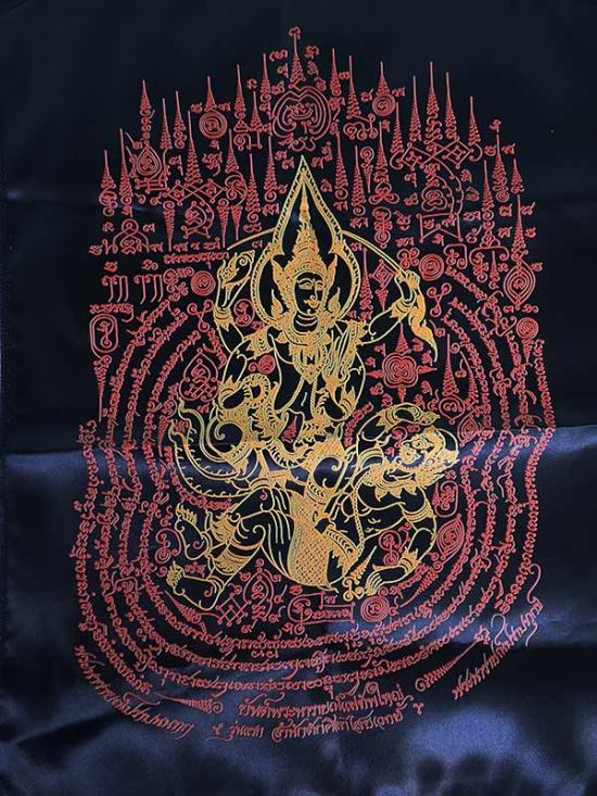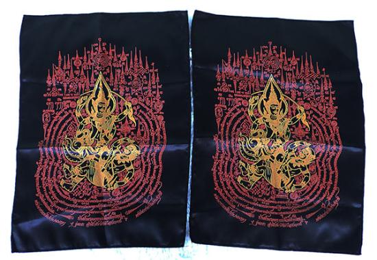 $วัดใจทีเดียว 2 ผืนค่ะ ผ้ายันต์พระนารายณ์ ปรานนทก รุ่นแรก (พระนารายณ์ ปราบทุกข์) หลวงพ่อเพ็ชร ปริปุณโณ วัดประดู่ทรงธรรม จ.พระนครศรีอยุธยา ผ้ายันต์กรรมการ สีดำ สกรีน 2 สี ผ้าเนื้อมันเย็บขอบ ขนาด A3 $ |