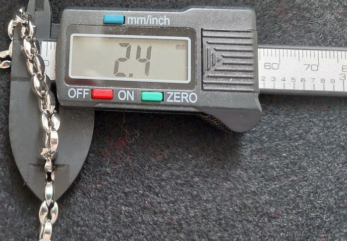 สร้อยสแตนเลสลายเมล็ดกาแฟ ยาว 26 นื้ว พร้อมสปริงก้ามปูสแตนเลสหมุนได้ เมล็ดกาแฟกว้าง 5 มม. หนา 2.4 มม.