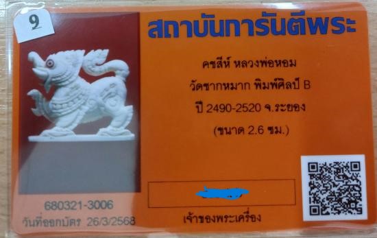 คชสิงห์ หลวงพ่อหอม ศิลป์B พร้อมบัตร ขนาด2.6 c ไม่โดนถือว่าโชว์