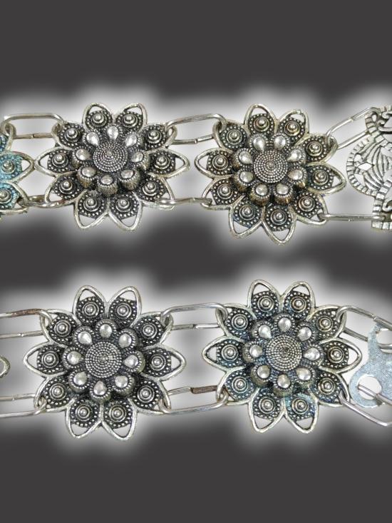 A3843.เข็มขัดโลหะชุบเงิน เข็มขัดล้านนา เข็มขัดลายดอกไม้ ตามรูป เคาะเดียวเเดง |