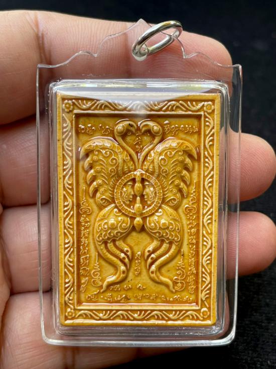 เทพจำแลงภมร เนื้อเคลือบสีเหลือง ขนาดกลาง รุ่น มหาเทพบันดาลโชค 2555 เลี่ยมพลาสติก สวยงาม กล่องเดิม