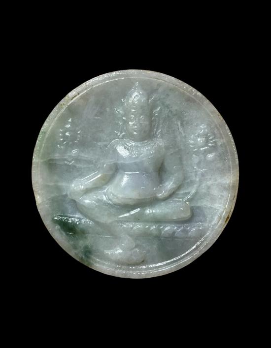 เหรียญเทพเจ้าไฉ่ซิ่งเอี้ย เทพเจ้าแห่งโชคลาภ ปางมหาเศรษฐีซัมภอ(เนื้อหยกแท้) รุ่นแรก หมายเลข3371 ปี48 (ไม่มีกล่องครับ)