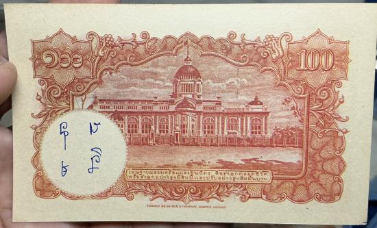แดงที่120 บาท ธนบัตรขวัญถุง พระพุทธโคดม เลข 9 หน้า 9 หลัง มีจารอักขระยันต์ ไม่ทราบที่ |