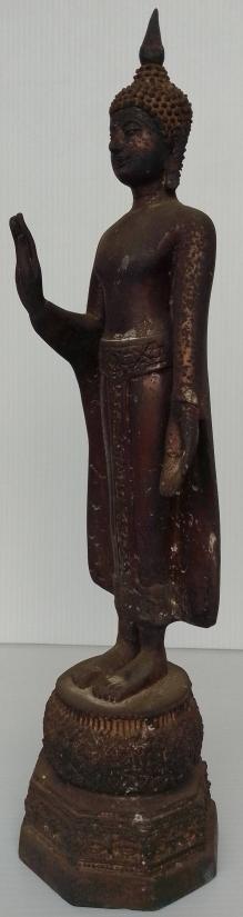 พระบูชาปางประทานพร(ยืน) วัดเหนือ จังหวัดร้อยเอ็ด ปี 2534 ขนาดฐานกว้าง 3 นิ้ว สูงรวม 12.5 นิ้ว |
