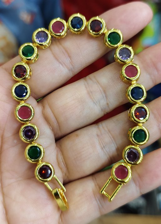 เทขาดทุน+ กำไลข้อมือนพเก้ายาว 7.นิ้ว งานจิวเวลลี่ชุบทองแท้ |