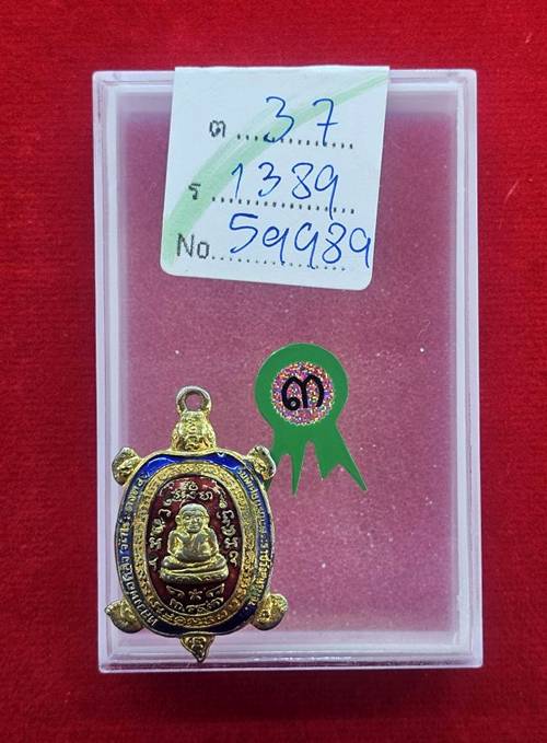 เหรียญเต่าเรือน หลวงปู่หลิว วัดไร่แตงทอง รุ่นบูรณะพระราชวังสนามจันทร์ เนื้อกะไหล่ทองลงยา ปี2538 ติดรางวัลที่3 |