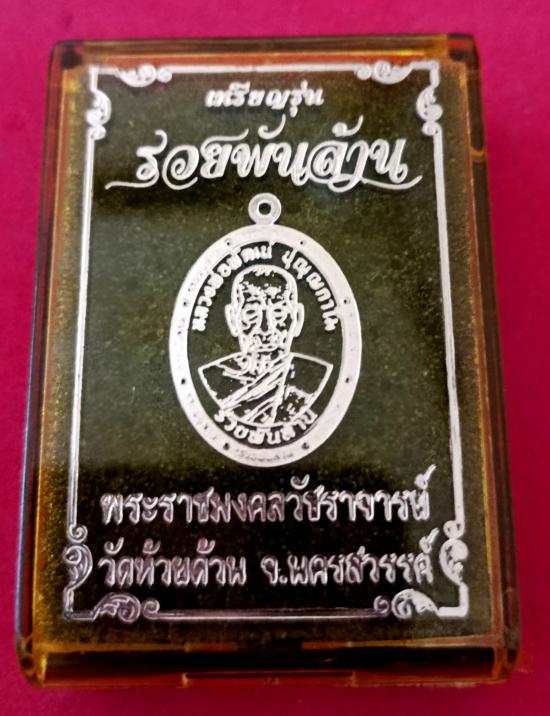 หลวงพ่อพัฒน์ เหรียญรุ่น รวยพันล้าน เนื้อเงินซาติน ลงยาจีวรเหลือง NO.๑๐๔ |