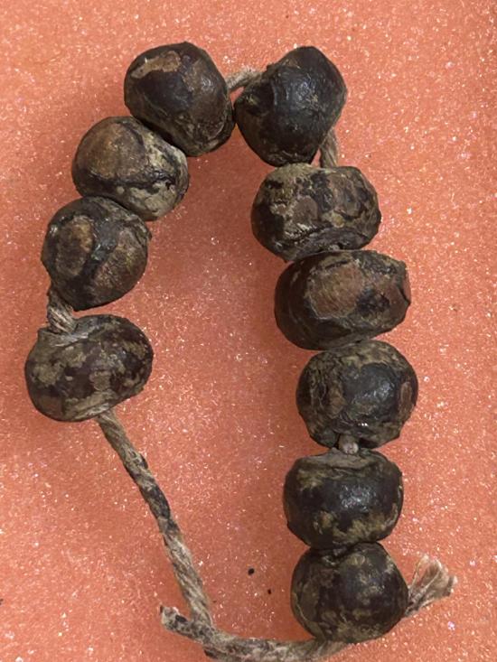 วัดใจเคาะแรก..เม็ดประคำเนื้อผงชุบรัก(เก่ามากรัก 100 ปี) จำนวน 10 เม็ด+เชือกเก่าไม่ทราบที่ |