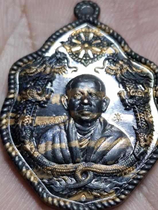 เหรียญมังกรคู่ พระอาจารย์อุ่นใจ (หลวงพ่ออุ่นใจ) วัดถนนโค้ง จ.นครราชสีมา มีจารมือ |