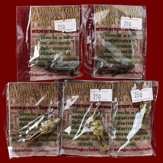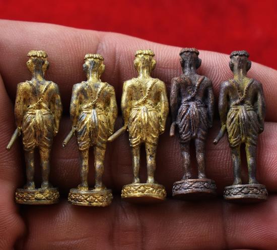 ชุด 5 องค์...พยนตราอาคม รุ่นแรก เนื้อทองระฆังเก่า + เนื้อทองแดงเถื่อน (ขนาดห้อยคอ) ปี 2557 หลวงพ่อฉลอง วัดวังปลากด จ.อุทัยธานี พร้อมซองรูปใบคาถาเดิมจากวัด สภาพพระตามรูปที่ลงทุกประการ (ขนาดสูงประมาณ 3.8 ซม.)