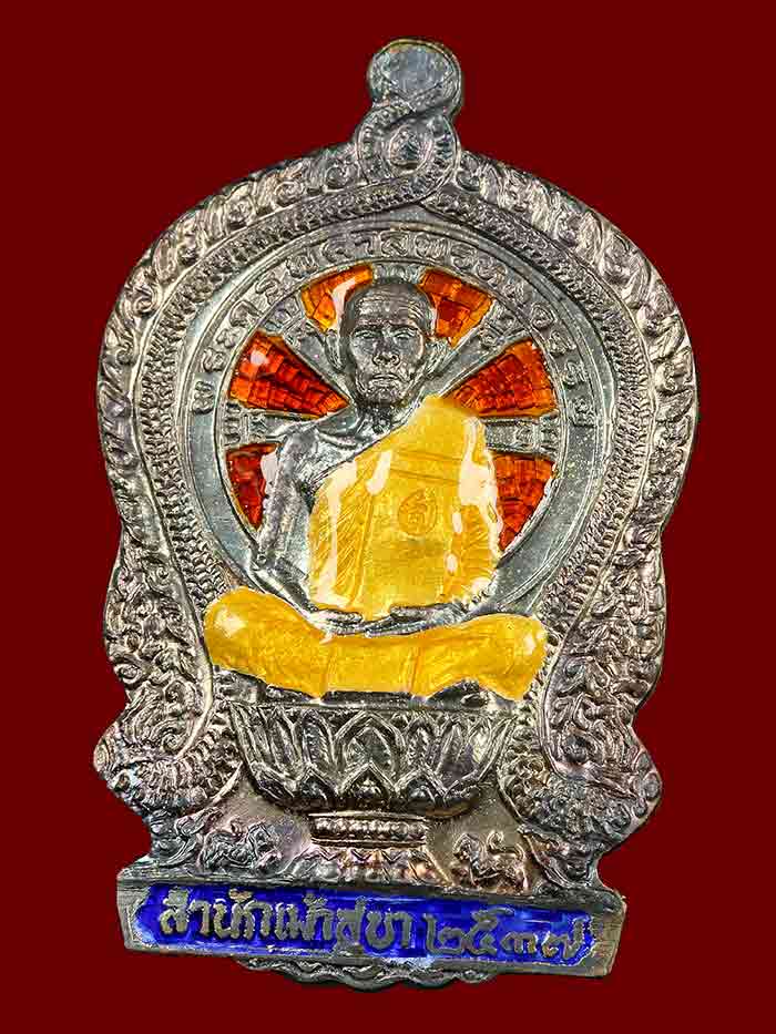 วัดใจ เหรียญนั่งพานรุ่นแรก หลวงพ่อสวัสดิ์ วัดเม้าสุขา เนื้อเงินลงยา ปี37 สภาพสวยเดิมตากล่อง เลข18