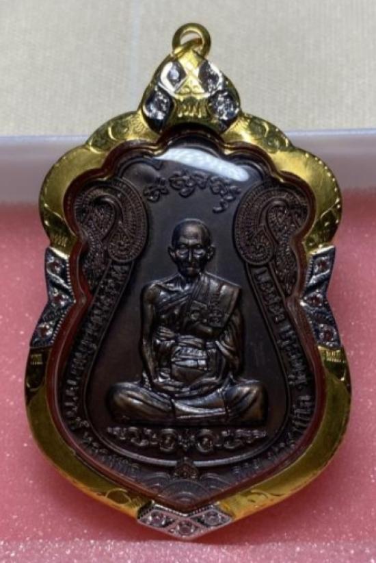 เหรียญหลวงพ่อรวย วัดตะโก รุ่นไตรมาส59 รวย รวย รวย เนื้อทองแดงปี2559 จ.พระนครศรีอยุธยา เลข10165 สภาพสวย เลี่ยมทองฝังเพชรcz พร้อมบัตรรับรองG-Pra |