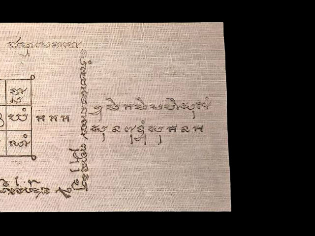 ***ผ้ายันต์กันฟ้า ขนาด 6x16 นิ้ว หลวงพ่อผิว วัดสง่างาม จ.ปราจีนบุรี ปี 2515*** |