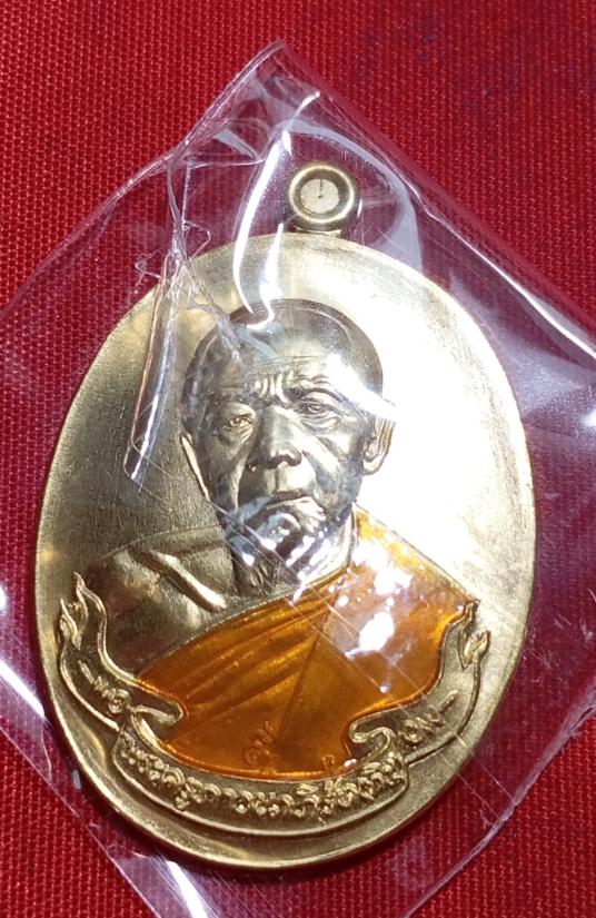 เหรียญห่วงเชื่อม รุ่น เชื่อมบุญ สร้างฐานะ หลวงปู่ทิม อิสริโก วัดละหารไร่ จ.ระยอง เนื้อทองเหลือง ลงยาจีวรเหลือง |