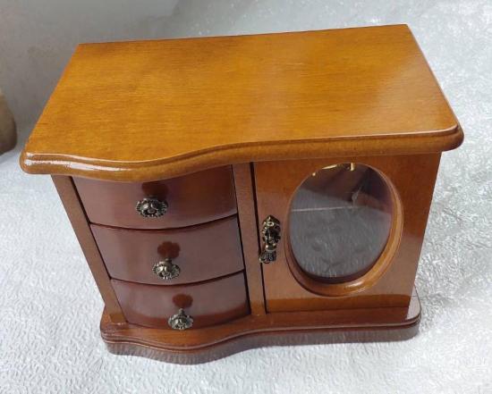 ***วัดใจ***กล่องเครื่องประดับ ขนาดเล็ก เนื้อไม้วินเทจญี่ปุ่น งานฝีมือเก่า 3 ลิ้นชัก 1 บานเปิด ขนาด กว้าง 22 ลึก 12 สูง 18 CM. |