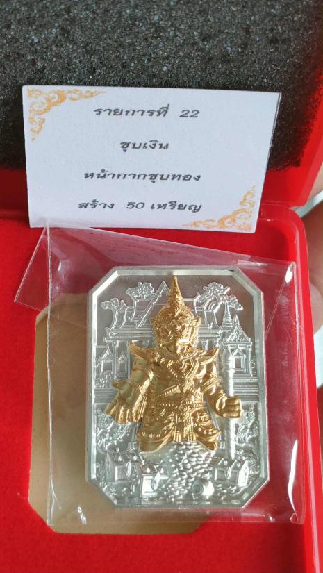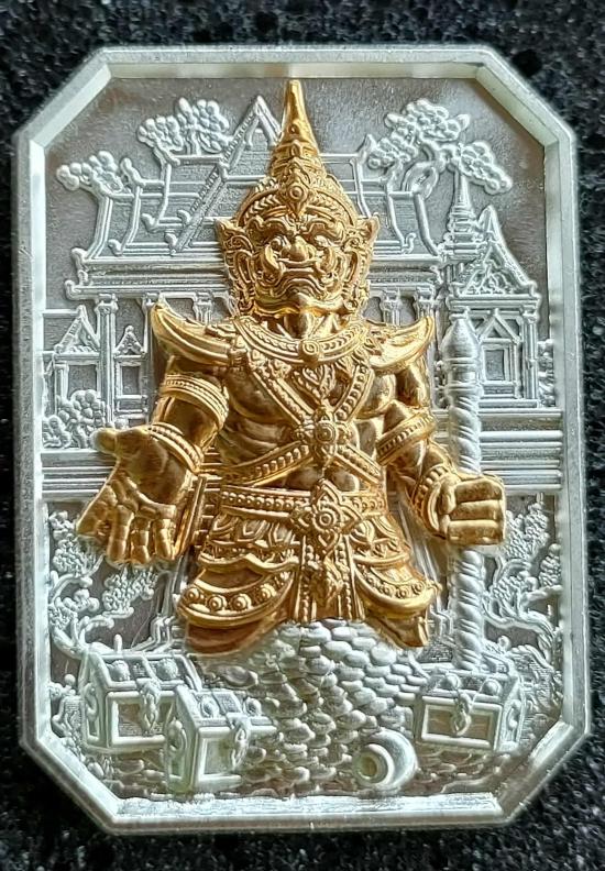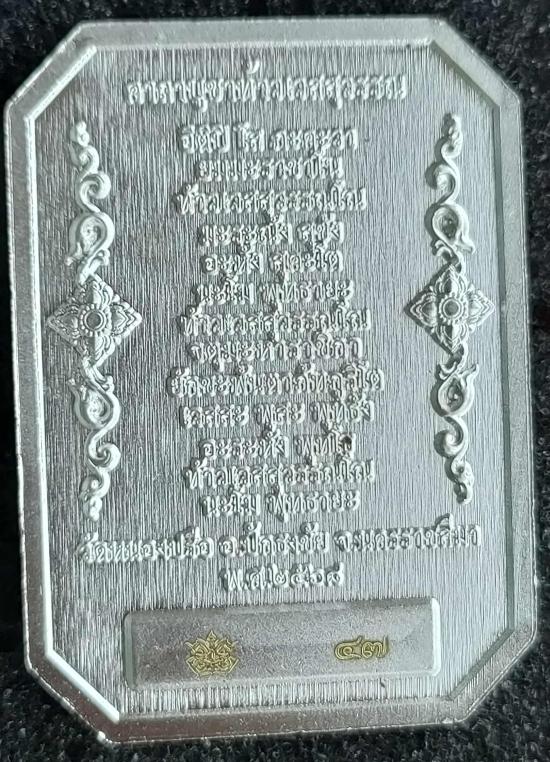 เหรียญท้าวเวสสุวรรณ พิมพ์แปดเหลี่ยม รุ่น"ประทานทรัพย์" วัดหนองปรือ จ.นครราชสีมา เนื้อชุบเงิน หน้ากากชุบทอง หลังคาถาบูชาท้าวเวสสุวรรณ หมายเลข ๔๗ พร้อมกล่อง (สร้าง 50 เหรียญ) |