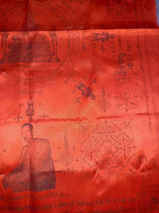 ผ้ายันต์คลุมนิมิต งานผูกพัทธสีมาฝังลูกนิมิต วัดพุนม่วง ตำบลหนองชุมพล อำเภอเขาย้อย จังหวัดเพชรบุรี ปี 49 เมตตาค้าขายเยี่ยม ( ผ้าจริง สีแดงครับ ถ่ายรูปใช้แสงมากไปหน่อย ) ขนาด55x73 ซม. |