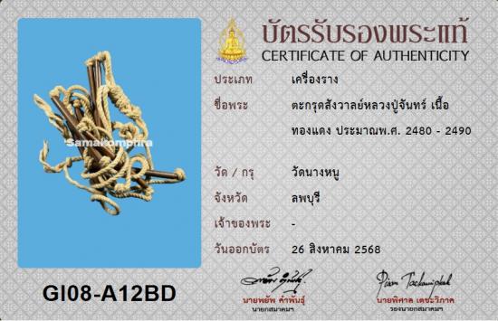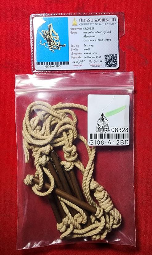 ตะกรุดสังวาลย์ เนื้อทองแดง ชุด8ดอก เชือกเดิม หลวงปู่จันทร์ วัดนางหนู ปี2480 พร้อมบัตรสมาคม |