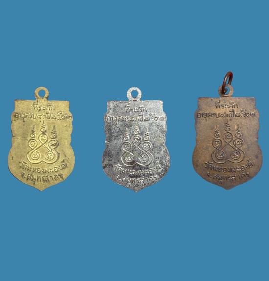 เคาะเดียวแดง เหรียญ หลวงพ่อทองอยู่ วัดหนองพะองค์ ปี 2512 รุ่น 3 ยกชุด 3 องค์ ทองแดงนิเกิ้ล,ผิวไฟ เนื้อฝาบาตร