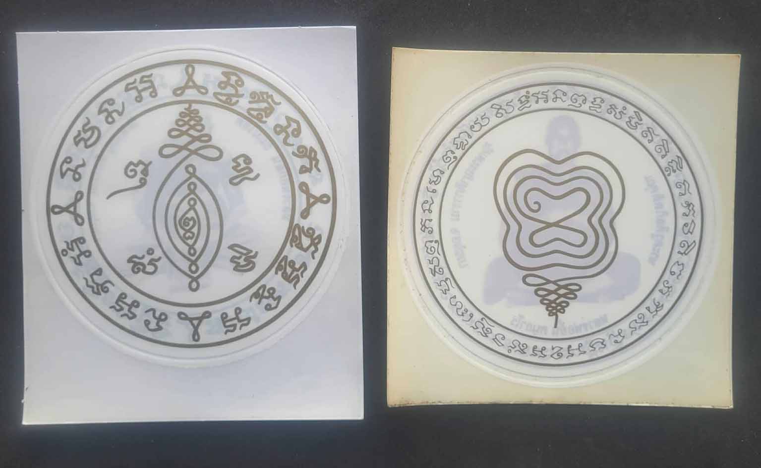 สติกเกอร์ หลวงพ่อกลั่น-หลวงพ่ออั้น วัดพระญาติ อยุธยา ปี 2536 2 ใบ เคาะเดียว |