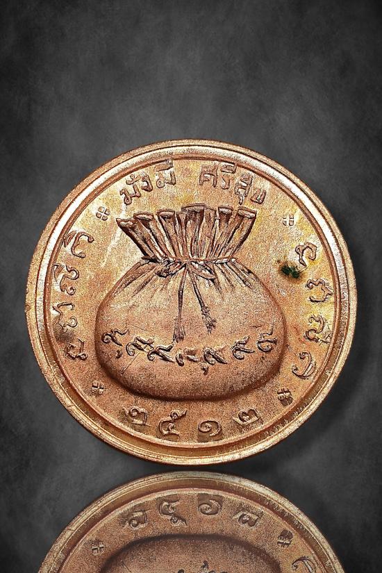 เหรียญขวัญถุง พระสามสมัย มั่งมีศรีสุข วัดชิโนรส ปี 2512 เนื้อทองแดงกะไหล่ทอง(หลวงปู่โต๊ะ, หลวงพ่อพรหม, หลวงพ่อกวย หลวงปู่สุข อาจารย์นำ ปลุกเสก)