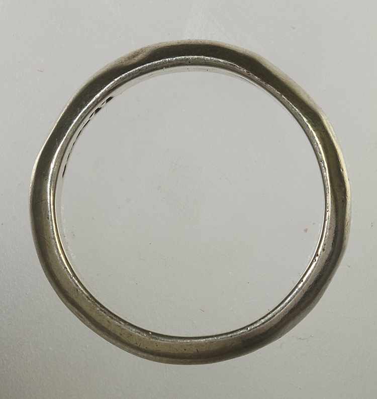 วัดใจ**เครื่องราง แหวนปลอก*{ เนื้อเงิน 92.5 }*มีรอยจารเก่า ไม่ทราบที่ ไซร์64.....ตามสภาพครับ