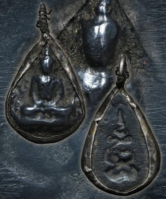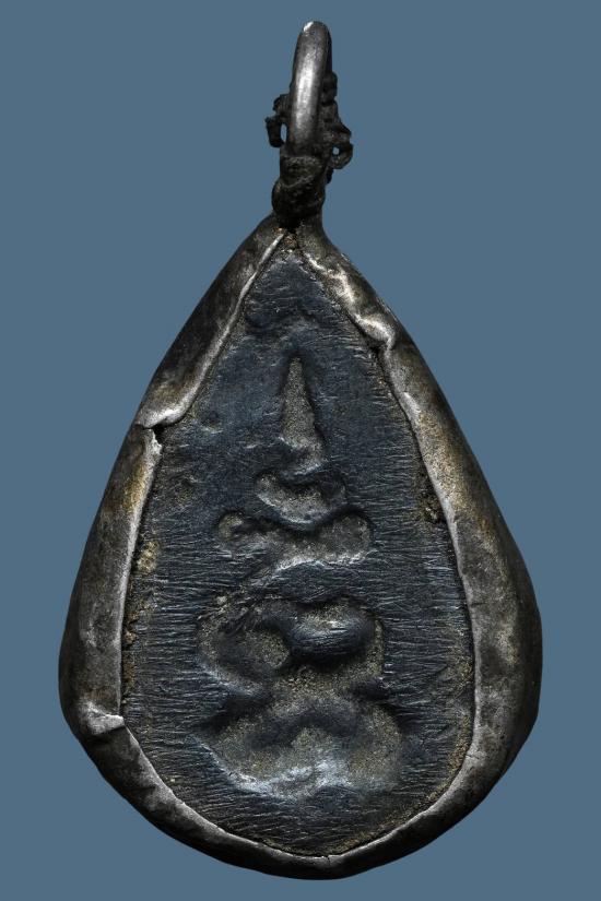เหรียญหล่อหยดน้ำ เนื้อเมฆพัด เลี่ยมเงินเก่า ไม่ทราบที่ |