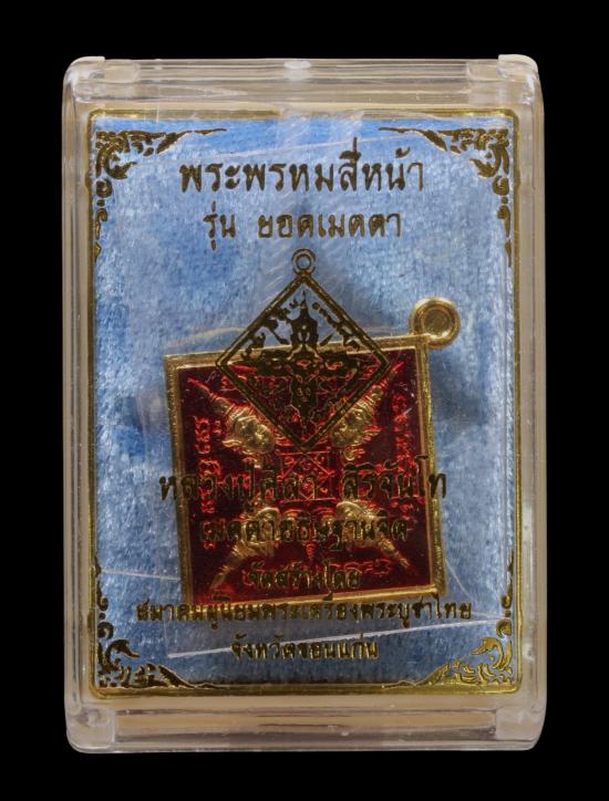 "วัดใจ แดง150" เหรียญพระพรหมสี่หน้า รุ่นยอดเมตตา หลวงปู่ศิลา สิริจันโท เนื้อทองแดงชุบทองลงยาสีแดง หมายเลข ๒๕๘ |