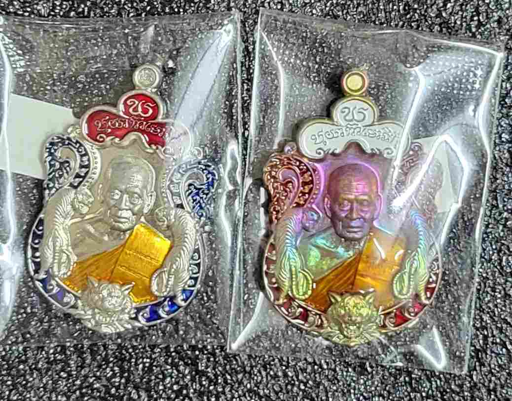 รายละเอียด เคาะเดียวแดง เหรียญหลวงพ่อพัฒน์ รุ่นพยัคฆ์แสนล้าน เนื้ออัลปาก้า ลงยาสามสี่ และเนื้อทองทิพย์ผิวรุ้ง ลงยาสามสี สภาพเดิม รวม 2 เหรียญครับ