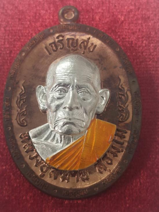 เหรียญ รุ่น เจริญสุข หลวงปู่สมาน สำนักสงฆ์เขายางหัก ราชบุรี ปี2566 เนื้อนวะหน้ากากเงิน ลงยาจีวร No.26