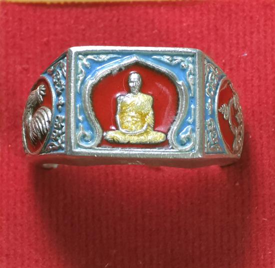 แหวนหลวงพ่อรวยเนื้อเงินลงยาปี 2563 ขนาดวงใน 2.1 cm |