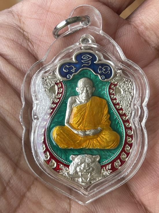 หลวงปู่เฮง ปภาโส เสือคาบดาบ เนื้อเงินลงยาเขียว องค์จริงสภาพเดิม สวยมาก เลี่ยมเก็บสภาพไว้อย่างดี ผมไม่ทราบข้อมูลสายนี้