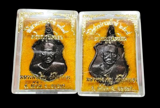 เหรียญหลวงพ่อเชิญ วัดโคกทอง รุ่นพิธีสวดภาณยักษ์ หลังท้าวเวสสุวรรณ ปี 2535 ตอกโค๊ต ช( จำนวน 2องค์ ).