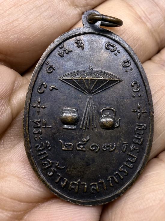 เหรียญรุ่นประสบการณ์เข็มงอ หลวงพ่อผาง วัดอุดมคงคาคีรีเขตต์ จ.ขอนแก่น ปี 17 เนื้อทองแดงรมดำ